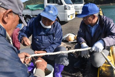 2020/11/30地域の話題ワカメの養殖に取り組む日南市南郷町の外浦漁協(小玉秀明組合長)と外浦小型船組合(澤田由也組合長)は11月24日、種糸を取り付けたロープを海中に設置した。来年2~3月上旬の収穫を予定している。 漁業者の経営安定化を目的に2018年か...