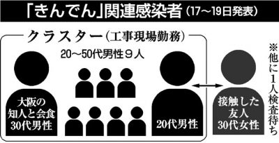 2020/11/20県内一般ニュース県と宮崎市は19日、県内で新たに3人の新型コロナウイルス感染が確認されたと発表した。このうち同市の30代女性は、18日までに感染が発表された電気設備業「きんでん」(大阪市)の宮崎市内の工事現場事務所に勤務する20代男性の友人。同事務所関連...