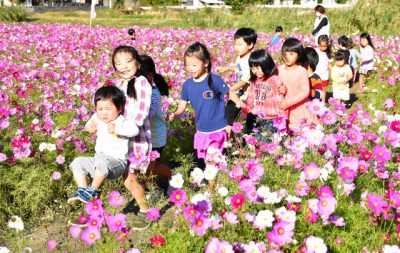 2020/11/19地域の話題串間市・JAはまゆう都井支所の裏手にある農業小田原藏義さん(66)の水田で、ピンクや白のコスモスが見頃を迎えている。散歩道も整備されており、地域の児童や園児らの遊び場として人気を集めている。今週末まで楽しめるという。 同JA串間壮...