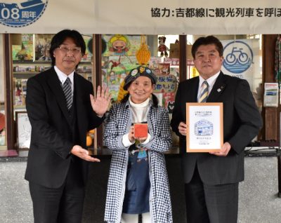吉都線の利用促進につなげたい 飯野駅に手作りスタンプ寄贈