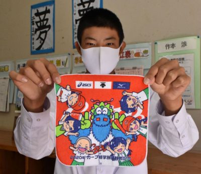広島カープから記念タオル コロナ禍で観戦中止の油津中 お礼の手紙球団へ