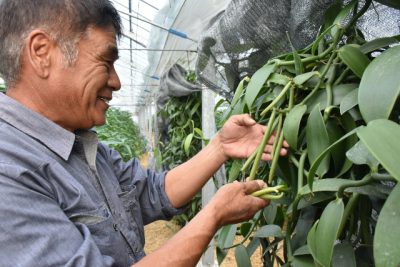 日南の農家が初のバニラ収穫 栽培4年目、結実に成功