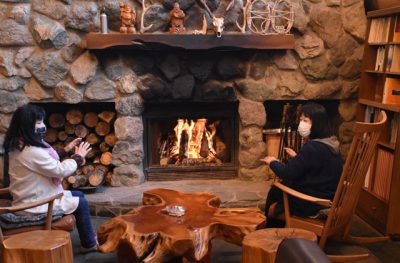冬支度暖炉火入れ 五ケ瀬のホテル