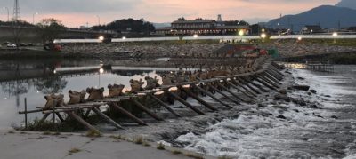2020/10/28県内一般ニュース延岡市の秋の風物詩「鮎やな」が、今年も同市の大瀬川に完成した。12月6日まで設置。期間中は日没から午後10時ごろまでライトアップし、来場者を出迎える。 架設工事は今月12日に始まり、伝統鮎やな師の高橋生矢(せいや)さん(70)ら8...