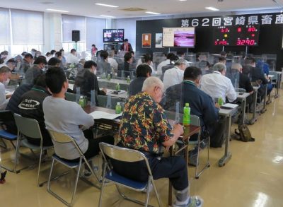 2020/10/28県内一般ニュース牛、豚の肉質を競う第62回県畜産共進会(県畜産振興協議会主催)の枝肉の部は27日、都城市高崎町のミヤチク高崎工場であった。グランドチャンピオン(優等1席)には、肉牛が都城市高城町・金政畜産(金政隆美代表)の「真秀」、肉豚はえびの市の森留浩...