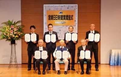 2020/10/24県内一般ニュース本県関係の各分野で優れた功績を挙げ、地域社会に貢献した個人や団体を表彰する第56回宮崎日日新聞賞の贈呈式は23日、宮崎市の宮日会館であった。本年度は科学、文化、教育、産業、社会、国際交流の6部門で2個人5団体が受賞。歌人として活躍し、日向...
