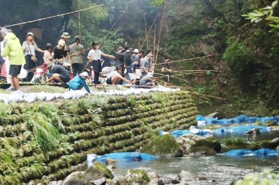 ニジマス釣り楽しい 川南町・篠原夫婦滝で大会