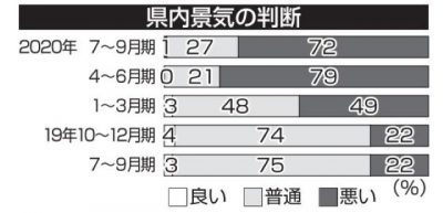 県内景気「悪い」72% 9月期企業動向 好転見られず