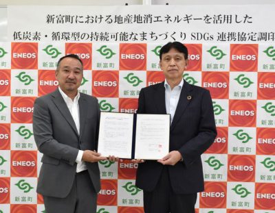 2020/10/09県内一般ニュース新富町とENEOSホールディングス(東京、大田勝幸社長)は8日、低炭素・循環型の持続可能なまちづくりに関する連携協定を締結した。今後、両者で実証実験を行いながら、公共施設や施設園芸での再生可能エネルギーの活用、スマート農業の推進、コミュニ...