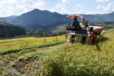 日南・坂元棚田で稲刈り始まる 台風の被害なく平年並み収量