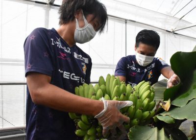 「テゲバナナ食べて応援を」 JFLテゲバ選手が収穫