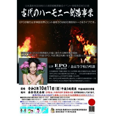 2020/10/05トピックnews日本遺産認定の西都原古墳群などの魅力を発信するイベント「EPOが創り出す神話世界のトーク&ライブ」は、11日午後5時から西都市民会館で開く。シンガーソングライターのEPOさん=沖縄県=が作曲し、同古墳に伝わる神話世界をイメージして作られた...