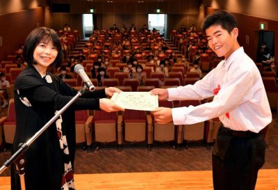 2020/10/04県内一般ニュース宮崎市の歌人、俵万智さんが審査員を務める「第4回みやにち 俵万智短歌賞」(宮崎日日新聞社主催)の表彰式とトークイベントは3日、宮崎市の宮日会館であった。最優秀賞の「俵万智賞」に輝いた高鍋町・高鍋西中2年、黒木星馬(せいま)さん(14)ら2...