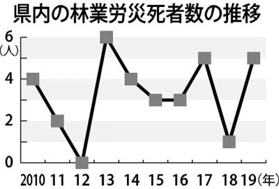 2020/09/26県内一般ニュース県内で2019年までの過去10年間に発生した林業労働災害による死者は33人で、全国ワースト2位だったことが宮崎労働局のまとめで25日、分かった。同日現在、今年の死者は1人だが、伐採作業が増える9月以降は例年、労災事故が増加傾向にあることか...
