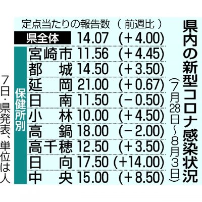 宮崎県内コロナ急増 前週比1.39倍、お盆警戒必要