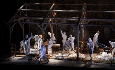 2020/08/30県内一般ニュース2010年に本県で発生した口蹄疫を題材にしたドキュメンタリー形式の演劇「29万の雫(しずく)2020」の公演は29日、宮崎市のメディキット県民文化センターで始まった。県内の役者17人が、牛や豚の感染が判明した時の畜産農家の心情、殺処分の現...