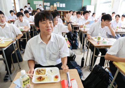 2020/08/27きょうの出来事口蹄疫の終息から10年となった27日、県内の高校3年生に宮崎牛などを食材に使用した特製弁当が振る舞われた。このうち、宮崎市の宮崎大宮高(吉田郷志校長、1074人)では同日、約350人の生徒が味わった。 県教委と地元企業、団体などで...