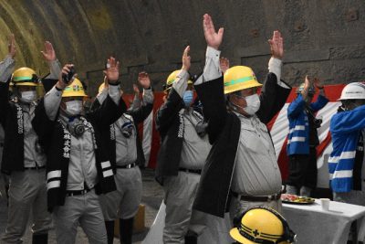 藤磯平トンネル貫通 串間で工事関係者ら式典