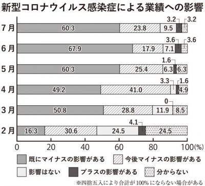 2020/08/27経済一般新型コロナウイルス感染拡大を受け、県内企業の84.1%が業績に「マイナスの影響がある」と答えたことが、帝国データバンク宮崎支店が7月に実施した意識調査で分かった。「マイナス」と答えた企業は4月調査(90.2%)をピークに減少しているが、「...