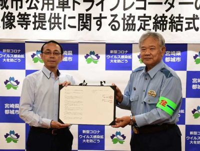 ドラレコ映像提供へ協定 都城市と警察署、安心・安全向上へ