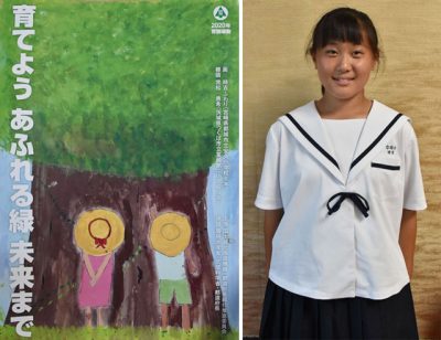 国土緑化ポスター最高賞 都城市・中郷中の時吉さん 県内初