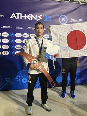 2025/08/04学生スポーツギリシャ・アテネで開かれているレスリングのU17世界選手権は2日、男子フリースタイル55キロ級決勝を行い、本県の小此木仁之祐(櫻美学園高2年)がウズベキスタンの選手を5-4で破り、金メダルを手にした。 小此木は第1ピリオドで2ポイ...