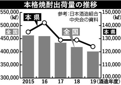 本県6年連続日本一 19酒造年度焼酎出荷量