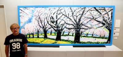 医療関係者に感謝込め 青い額縁の満開桜 宮崎空港に絵画展示