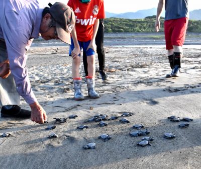 海へ向かって元気よく 日南でアカウミガメふ化始まる