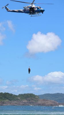 水難事故備え緊張 潜水隊と防災ヘリ初訓練