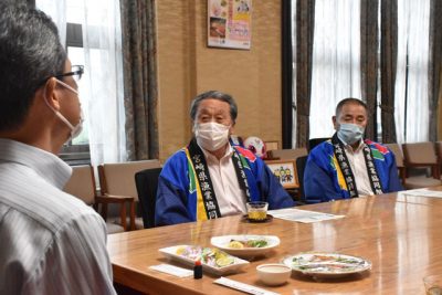 2020/07/28県内一般ニュース県漁連の宇戸田定信会長ら6人が27日、河野知事を表敬訪問し、新型コロナウイルス感染拡大の影響で、出荷量減少などの打撃を受ける養殖魚の魅力をPRした。 県漁連は養殖魚の消費拡大を図ろうと6月29日~7月21日、県内の小中学校25校の...