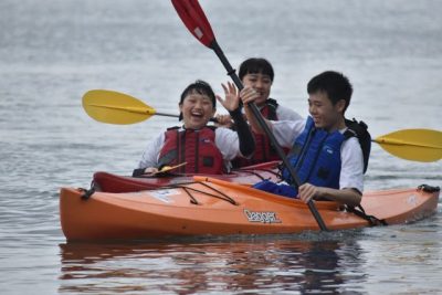 シーカヤック楽しいね 南郷中3年生が体験学習