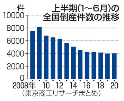 2020/07/09経済一般民間信用調査機関3社(帝国データバンク、東京商工リサーチ、東京経済)は8日、2020年上半期(1~6月)の県内企業倒産集計(負債額1千万円以上)を発表した。このうち帝国データバンク宮崎支店によると、法的整理による倒産件数は前年同期比9件増...