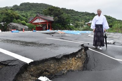鵜戸神宮の駐車場陥没 県内記録的大雨