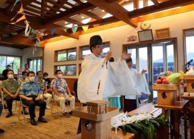 2020/07/05県内一般ニュース宮崎市の青島、白浜、サンビーチ一ツ葉、日南市の大堂津海水浴場で4日、県内で最も早い海開きがあった。このうち青島海水浴場では、約20人が出席して安全祈願祭が行われた=写真。 祈願祭では、関係者が玉串をささげて期間中の安全を祈願。神事...