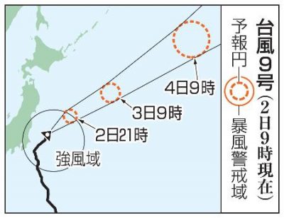 台風9号、本州の東へ 高波と強風に注意