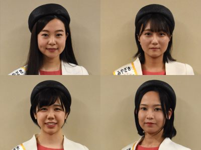 2020/06/24地域の話題都城市のPR役となる本年度の都城観光レディ4人が決まった。就任したのは、いずれも会社員の今村優花さん(24)=都城市若葉町、村山晴香さん(19)=同市上長飯町、西田詩音さん(23)=同市姫城町、兒玉安未さん(21)=同市高城町。任期は来年...