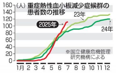 2025/08/01国内外ニュース 主要マダニが媒介するウイルス感染症「重症熱性血小板減少症候群(SFTS)」の患者が、過去最多を上回るペースで増えている。国立健康危機管理研究機構によると、全国の医療機関から報告された今年の累計患者数は100人を超えた。マダニは草むらなどに多く...