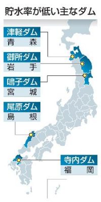 ダム貯水率、33カ所が平年未満 15道府県、高温少雨で
