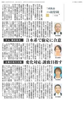 2020/06/16紙面から/3日目/ダム「事前放流」/3水系で協定に合意/企業の地方分散/変化対応 誘致目指す 武田浩一議員(自民、串間市区)は、2018年から県内の甘藷(かんしょ)で発生が確認されている「サツマイモ基腐病」の現状や対策を尋ねた。 大久津...