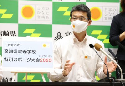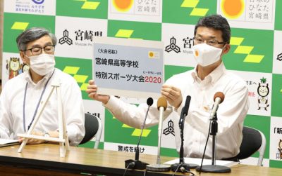 2020/06/15夕刊プラス1新型コロナウイルスの感染拡大防止に伴う県高校総体、全国高校野球選手権宮崎大会の中止を受けて県が開催を検討していた代替大会について、河野知事は15日、県庁で記者会見し「宮崎県高等学校特別スポーツ大会2020」を今月27日から開催する、と発表...