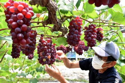 2020/06/08トピックnewsブドウ栽培が盛んなJA尾鈴管内(川南、都農町)で、「デラウェア」の出荷が始まった。赤紫色に熟した実が輝き、甘さや程よい酸味など品質は上々。糖度18度以上などの出荷基準が設けられ、生産者が収穫作業に汗を流している。 同JAによると本...