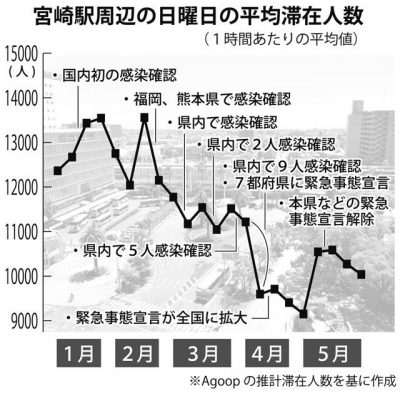 宮崎駅前人出最大3割減 4、5月自粛裏付け