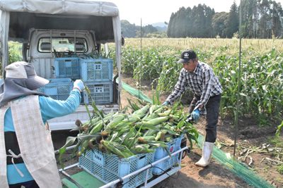 2020/05/30県内一般ニュース本県特産のスイートコーンの出荷が、西都市などでピークを迎えている。主力品種のゴールドラッシュは糖度が高く、贈答用としても人気が高い。6月下旬まで県内外に出荷される。 同市上三財の農業山口幸治さん(59)の畑(1・2ヘクタール)では...