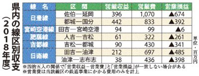 本県5区間 赤字3億円超 沿線自治体「維持へ努力」 JR九州18年度