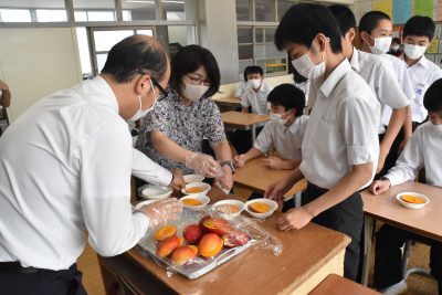 2020/05/26県内一般ニュース新型コロナウイルスに伴う農産物の需要低迷が懸念される中、西都市のJA西都(平島善範組合長)は25日、市内産の完熟マンゴーを地元の子どもたちに味わってもらう出前講座を、同市・穂北中(鳥原孝仙校長、82人)で開いた。 同JAによると、...
