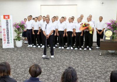 2025/07/31トピックnews第107回全国高校野球選手権大会(5日開幕、阪神甲子園球場)に2年連続で出場する宮崎商業高野球部の出発式は31日、宮崎市の宮崎ブーゲンビリア空港であった。橋口光朗監督やベンチ入りメンバーら約30人が関係者から激励を受け、空路で大阪入りした...