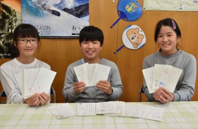 高齢者をはがきで応援 五ケ瀬の小中学生