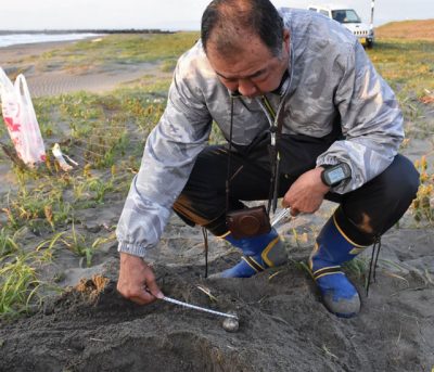 富田浜にアカウミガメ 今年の産卵始まる