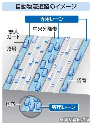 自動物流道路、時速80キロ 国交省方針、東京—大阪30年代